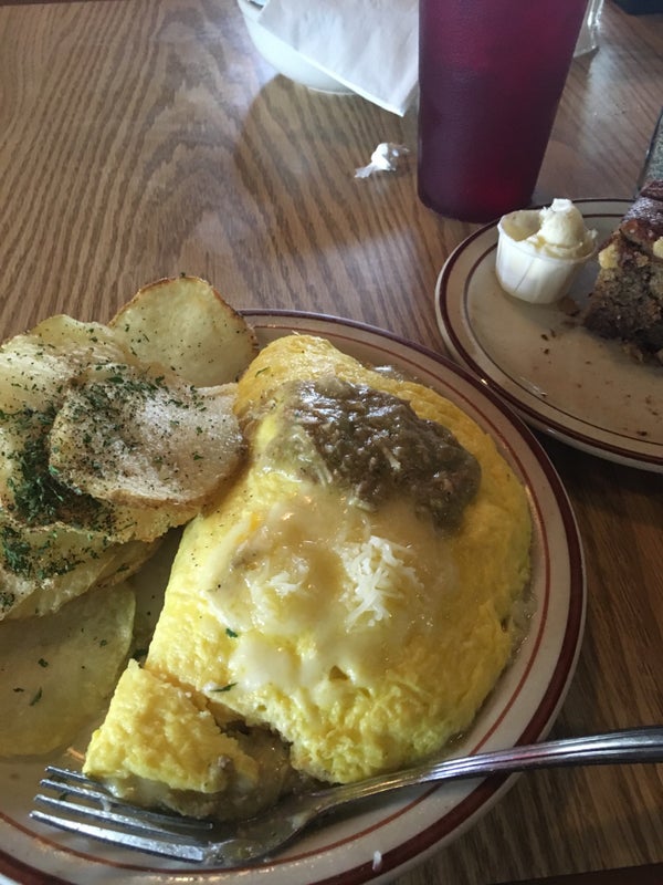 "poppeyes omelet" is delish ! With potato chips breakfast potato -Carlo