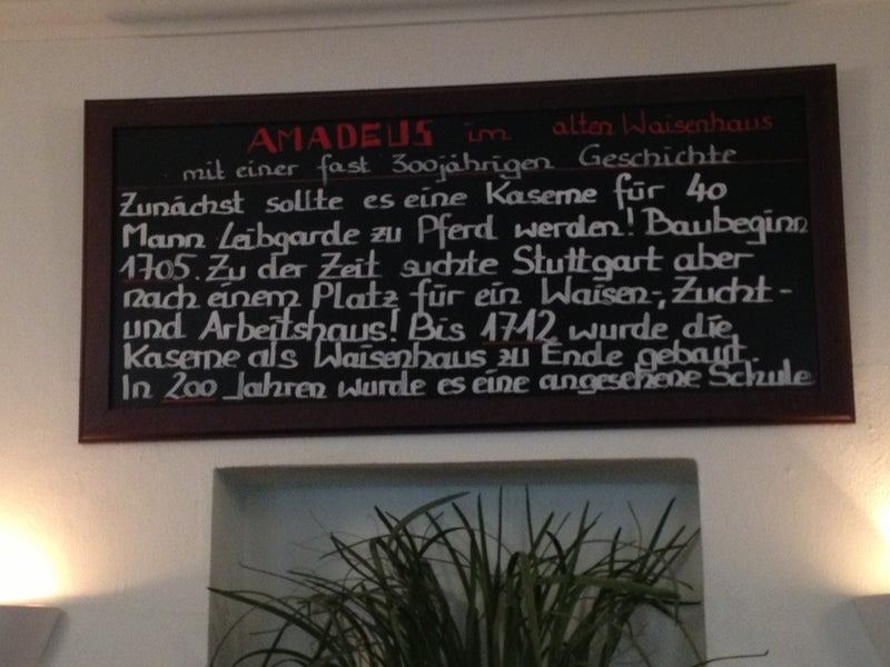 Für mich das beste Lokal in Stuttgart, für jung und alt!Leckeres Essen in top Qualität, reichhaltige Auswahl an diversen Getränken, schöner Biergarten und sehr gastfreundliches Personal!I ♥ Amadeus! -Evi