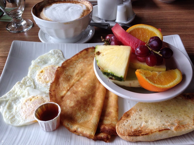 2 oeufs bacon avec baguette et beaucoup de fruits pour seulement 7,50$! Vraiment bon en plus!! -Tristan