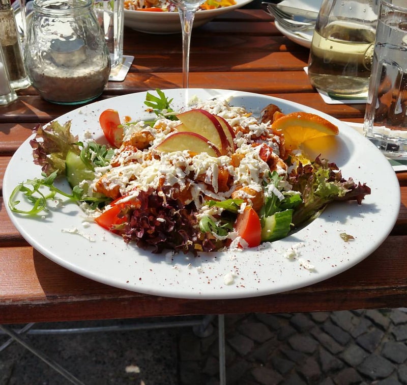 Also the decor is questionnable, they have a great menu with lots of veggy options... Huge portions! Perfect for breakfast too. Plus biggest cup of "Milchkaffee" I ever had :) LOVE this place! -Nora