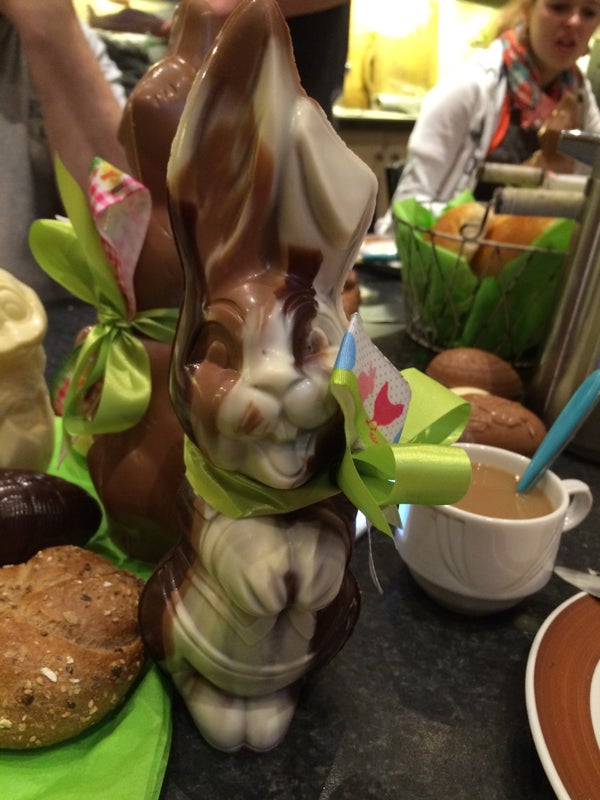Bijna Pasen ,veel keuze in chocolade figuren eitjes en veel mandjes en opvulartikels ,gevuld met chocolade. Voor groot en klein. -Maria