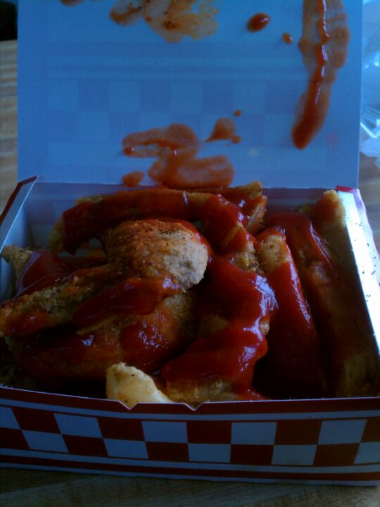 Western fries with hot sauce for breakfast