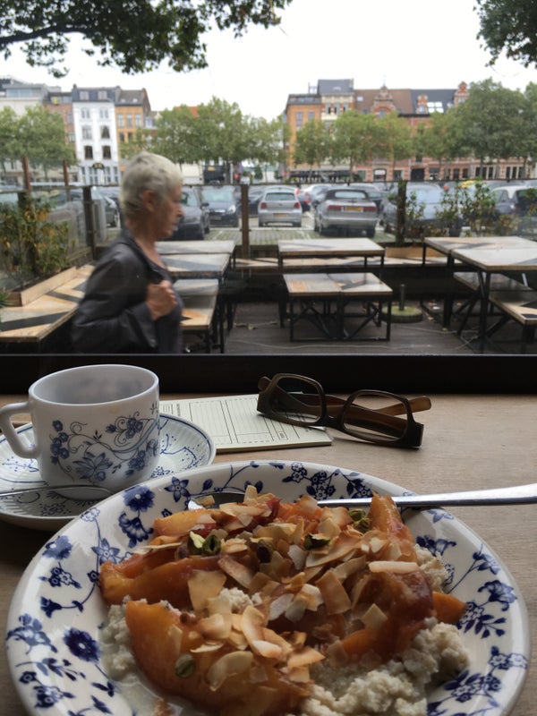 Zweeft tussen restaurant en koffiebar, met één grote houten tafel met banken. Ideaal ontbijtadres ook. -De Standaard