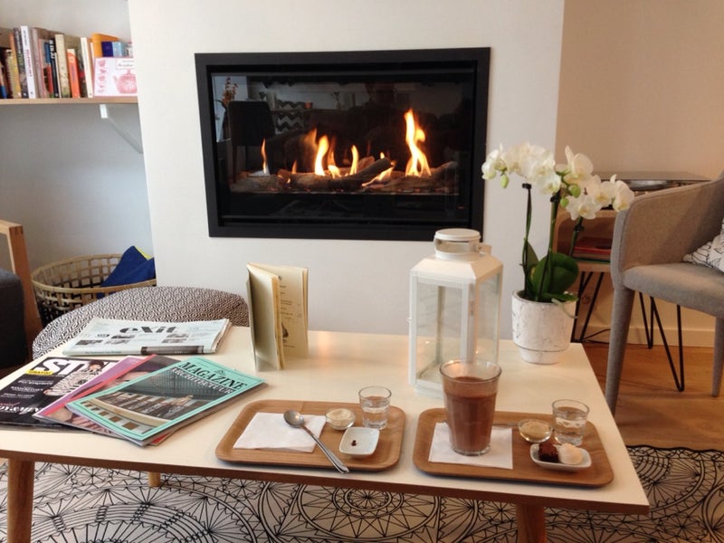 Yummy thea? with chocomouse near a very cozy fireplace. Very pleasant atmosphere! -Nelson