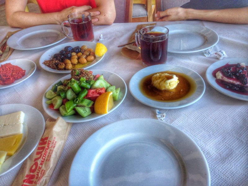 Öncelikle kahvaltı. Taze balık, meze ve rakı. İnsan daha ne ister:)) -Dilek