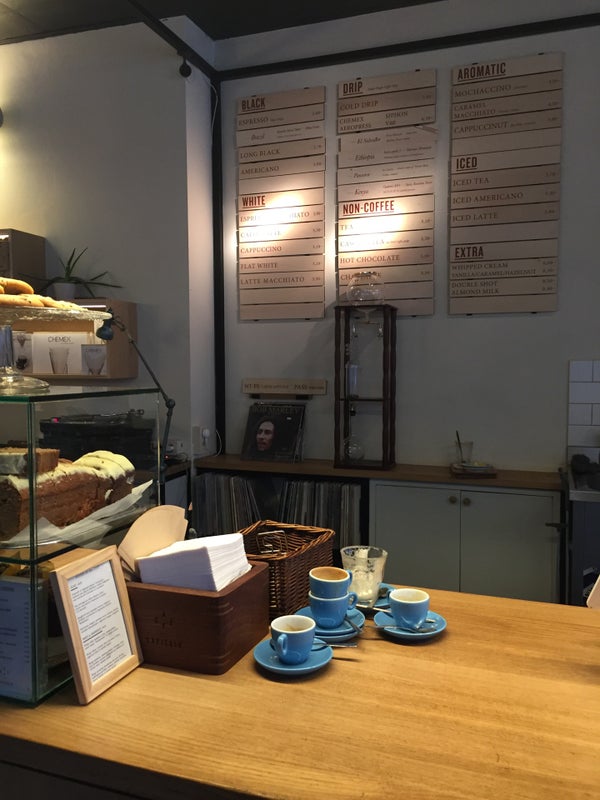 Same recipe as before its renovation: Good coffee (try Flatwhite), cakes and cookies. Since it's small you could probably need to wait to find a seat but it offers a nice alternative to work. -Alexandros