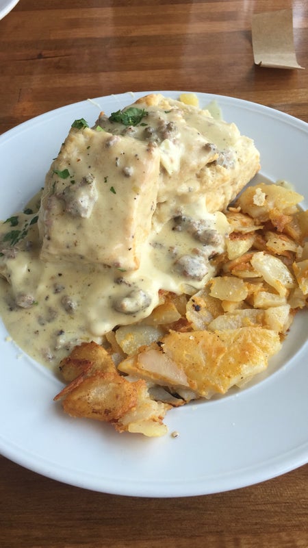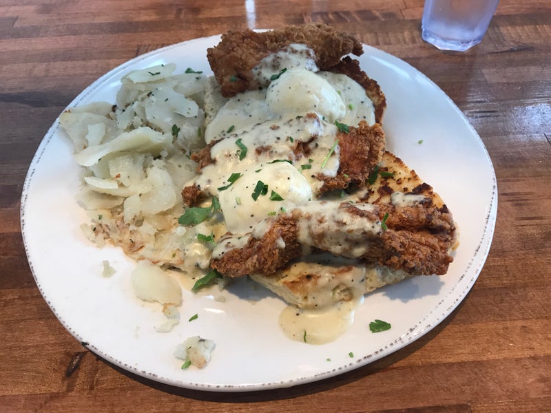 Pop Tart homemade, Chicken and Waffles, Biscuits and Sausage Gravy. Like eating at home. Waiter was friendly with great recommendations. Come back again, Definitely. 😋 -David