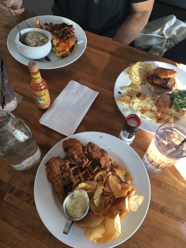 Had the chicken and waffles. Wonderful. Fast service. Good drinks. -Vicki