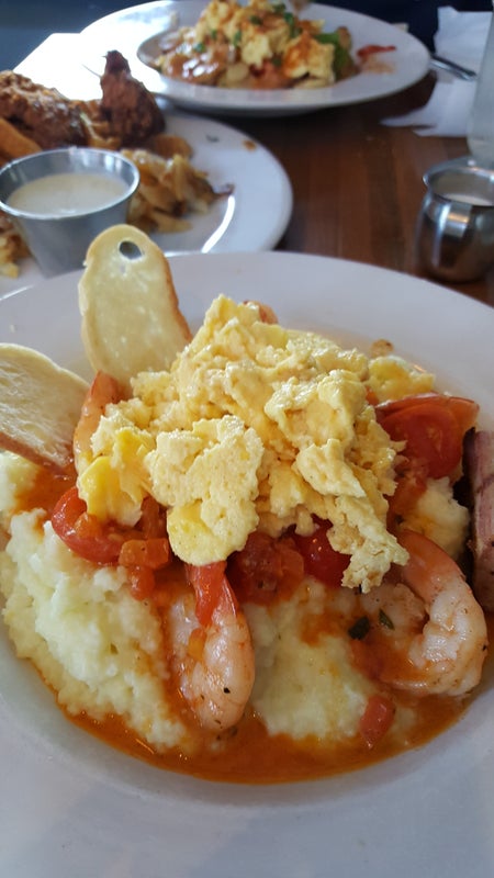 Shrimp n grits! The poached eggs add to the creamy richness. Yummy! -Darolyn