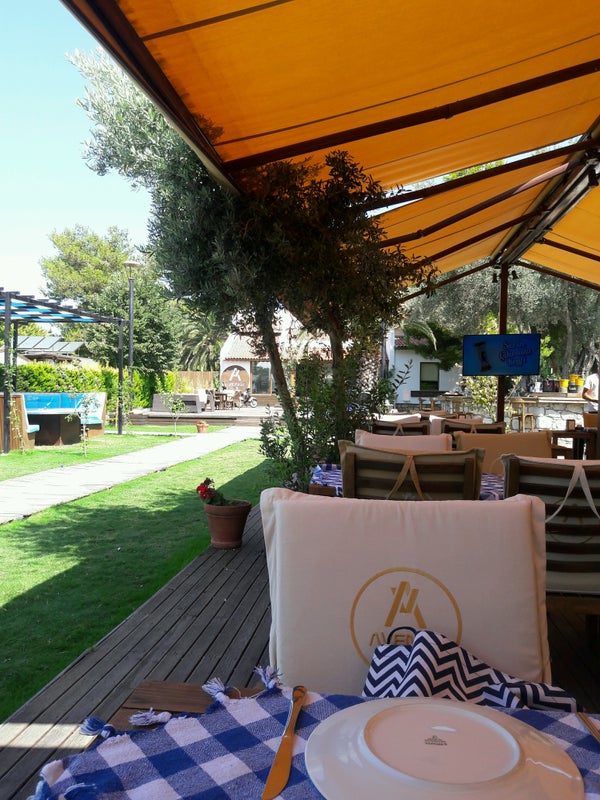 Kahvaltısı süper zengin keyifli bir bahçe müzikler ve atmosfer rahatlamak ve kafa dinlemek isteyenler için doğru adres oteliyle ve restoranıyla alaçatıda ki en güzel tesis park problemi de yok -Barış