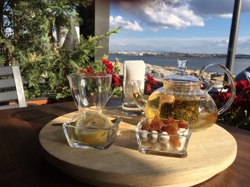 Degisik çaylar, tatlılar. Sunum çok basarili. Deniz kenarında çay keyfi. -Ismail