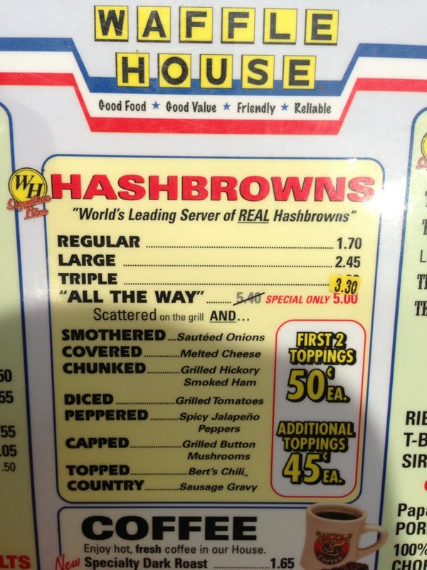 Have the famous hash browns all the way. -Diego