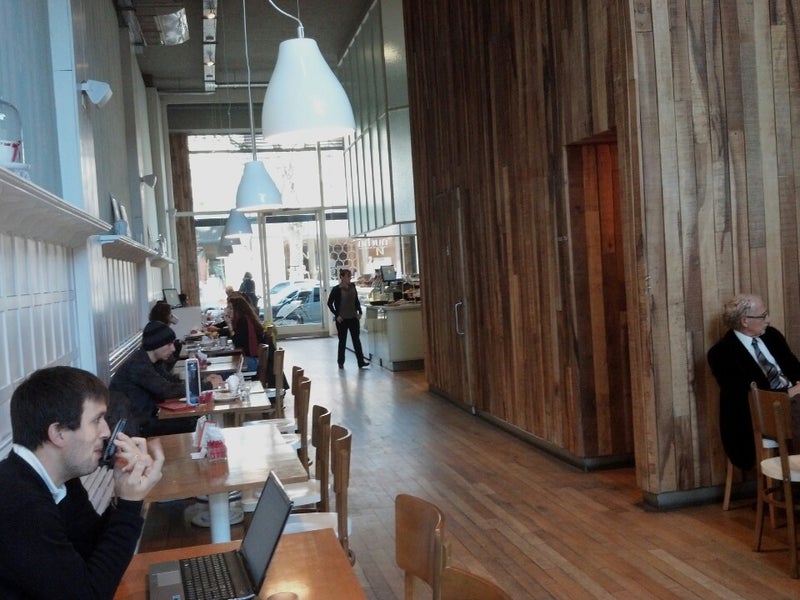 Está muy bueno para trabajar en las mesas del fondo. Podés enchufar tu compu. -Ernesto