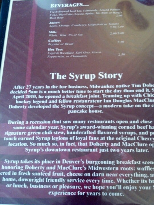 Syrup rules. Gluten free menu is unreal for a breakfast place. The owner Tim is cool and the staff too. Go to Syrup for breakfast or lunch! -Mark