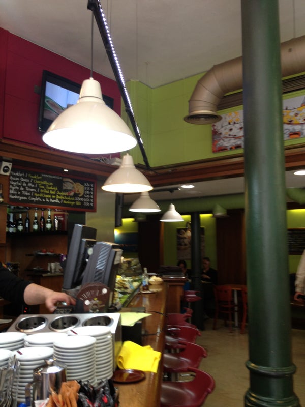Es un buen lugar para reunirte por la tarde o un fin de semana por la mañana. El café es bueno. De la comida no puedo opinar porque no he comido nunxa aquí pero las bravas son aceptables :-) -Jessica
