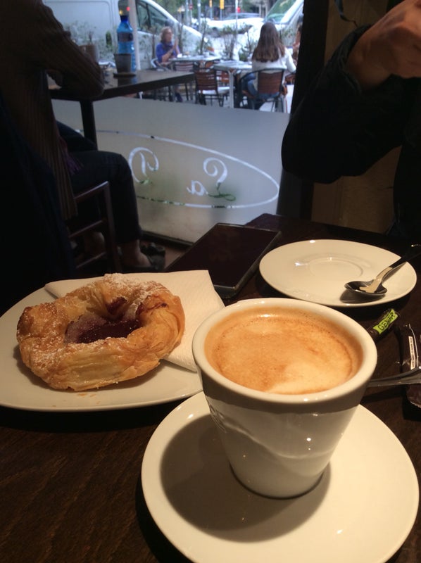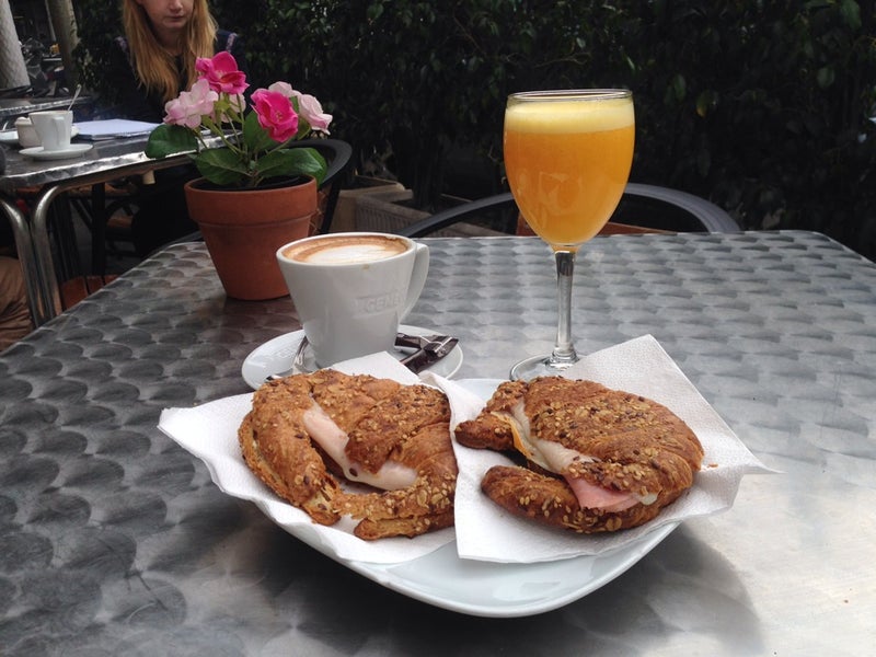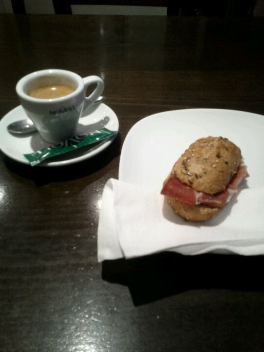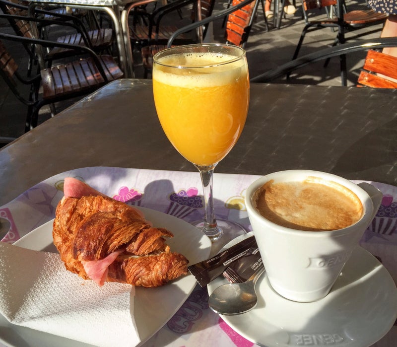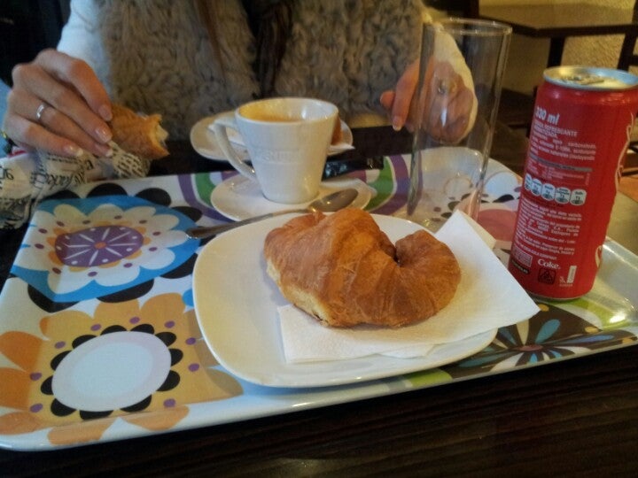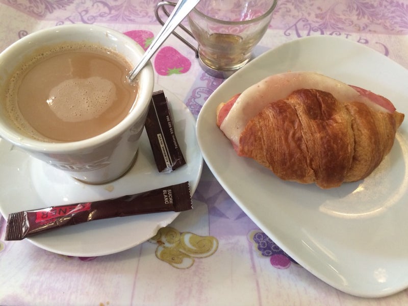 Cafe y cruasán de jamón y queso caliente, delicioso!! -Sergio
