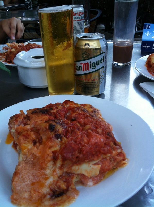Si estas en la terraza, hay que entrar a pedir, no viene nadie. Lasaña + Ensalada + Bebida + Postre 9,62€ -Lux