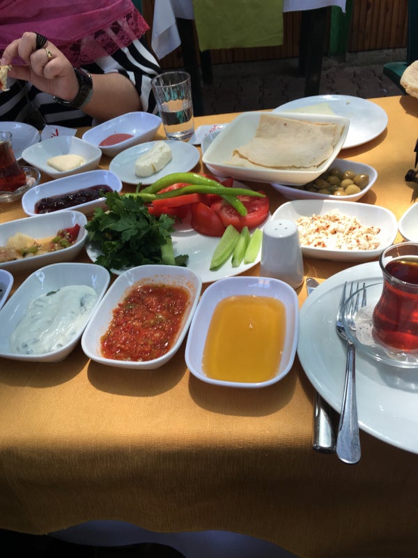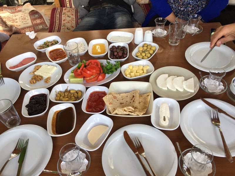Antalyadan buraya kadar köy kahvaltısı yemeye geliyoruz bari ürünler doğal olsun. Bal kaymak hazır. Kaşarlı bazlamayı da ısrarla bol kaşarlı dedik ama kaşar yok içinde. Olmadı. Umarım düzeltirler. -Ertunc