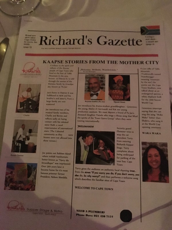 @richardssstage is a FABS #NightOut..amazeballs #friendly hosts ESP Laura (!)/stunningly delish #food (the prawn+chicken #curry!)/SUPERLATIVE Show! Cried 3x, laughed WAY more! DEF @jamescapetown FAVE! -James