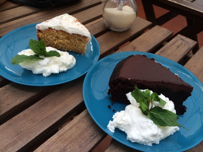 Tienen una terracita interior muy acojedora. Los cakes muy buenos. El te frio esta malisimo y eso q soy fan#1 del te en todas sus representaciones. -Katia