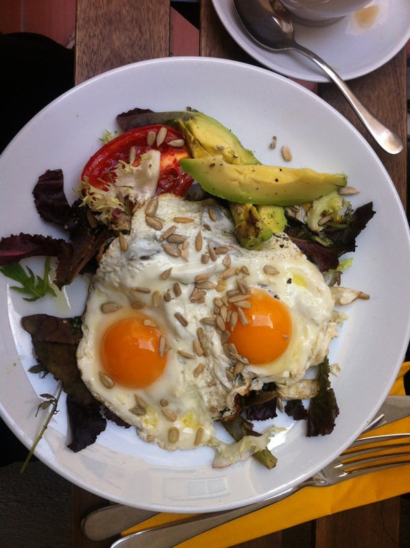 Brunch a la carta. Huevos fritos, revueltos, en tortilla, al gusto. Con bacon, con verduras... Pan cakes, fruta, cafe, zumos naturales, ensaladas... -Angel
