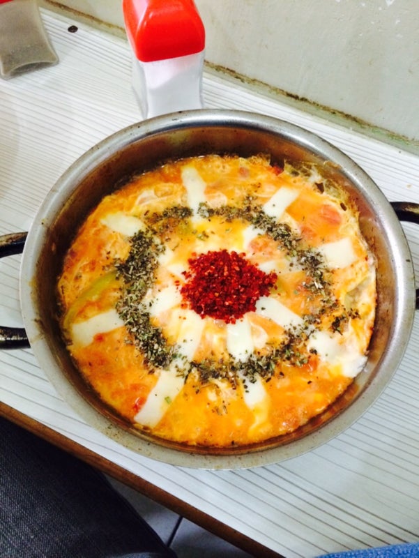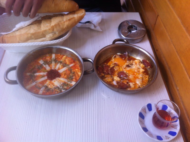 Kahvaltılık kaşarlı menemen, tost ve orjinal çayı ile harika bir ortam :) -Ulaş