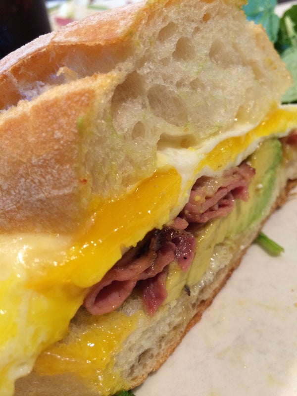 The breakfast sandwich is a perfect mix of ham, cheese, avocado and egg. -Andrew