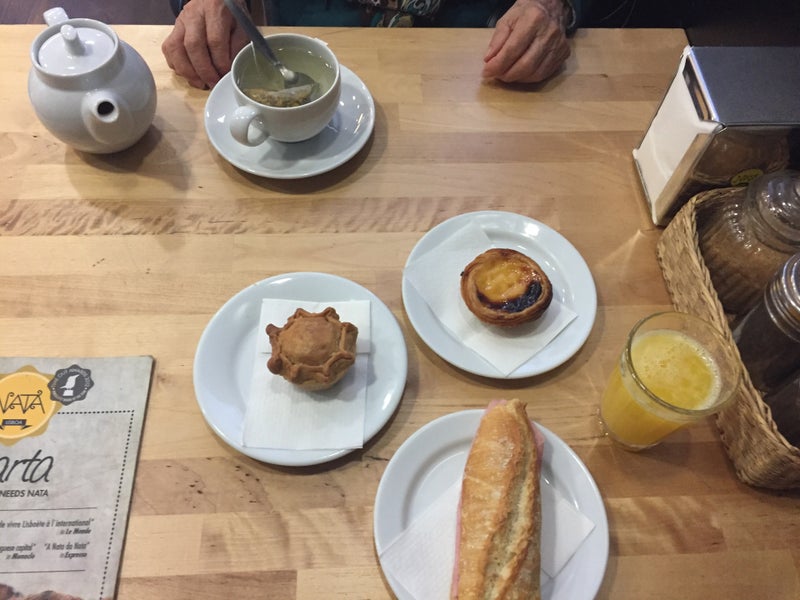 We chose the €9,90 menu incl. a little pie, hot dish, Nata (custard cake) or coffee. Everything was good, incl. the service. Tables were a bit dirty, but overall nice experience. They have soy milk???? -Beth