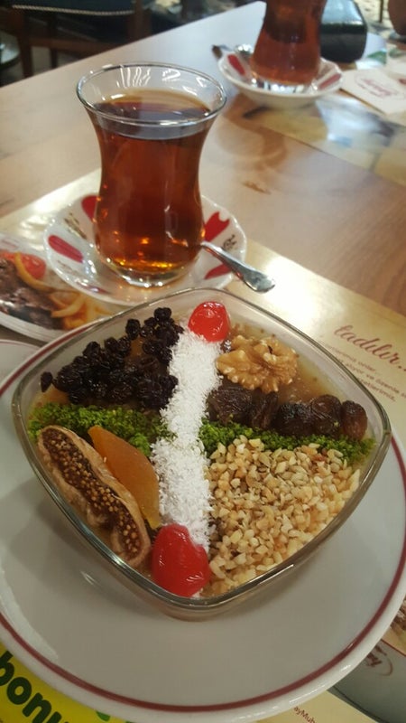 Kapıdan girer girmez güleryüzlü Sevgi hanım bizi karşılayarak masaya aldi veee tavuk suyuna sehriye çorbası doner ve saray muhallebisi .hepsi müthiş lezzetliydi Teşekkürler -Nesrin