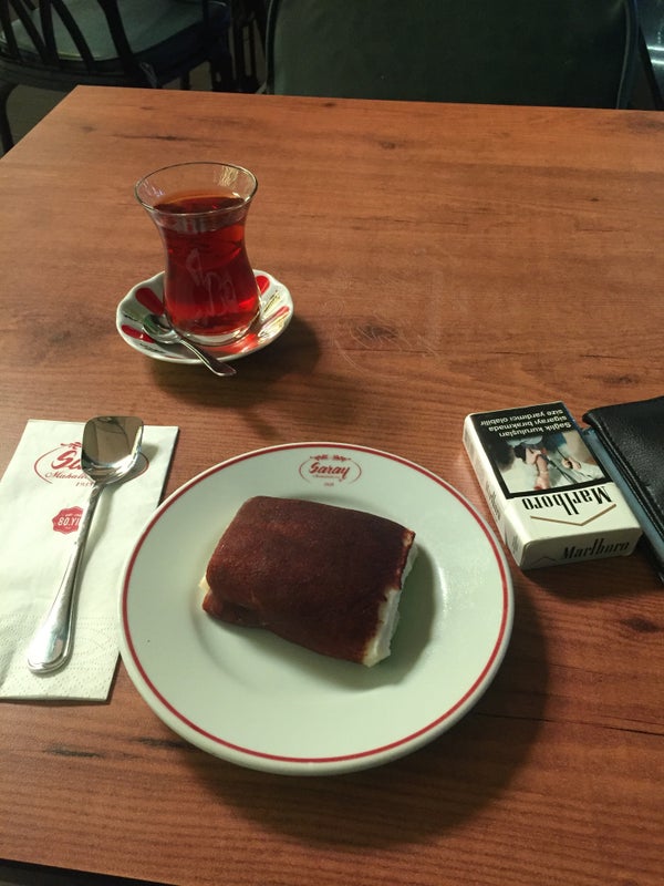 Ortalıkta boş boş dolaşan bir sürü garson olmasına rağmen sipariş verdiğiniz çay ve börek tam yarim saat sonra geliyor ve bu arada tezgahta görüp begendiğiniz simitlerde tükeniyor, Çay demlenmemiş.. -İlker