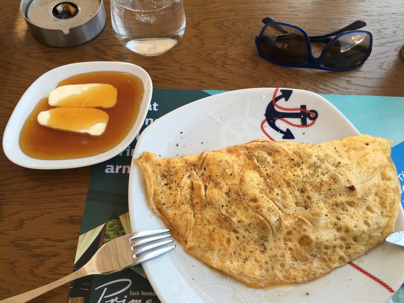 Kahvaltı için güzel mekan. Peynir, dereotu ve maydanozlu omlet yanında da taze sıkılmış portakal suyu ???????? -Banu