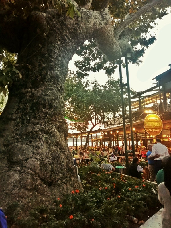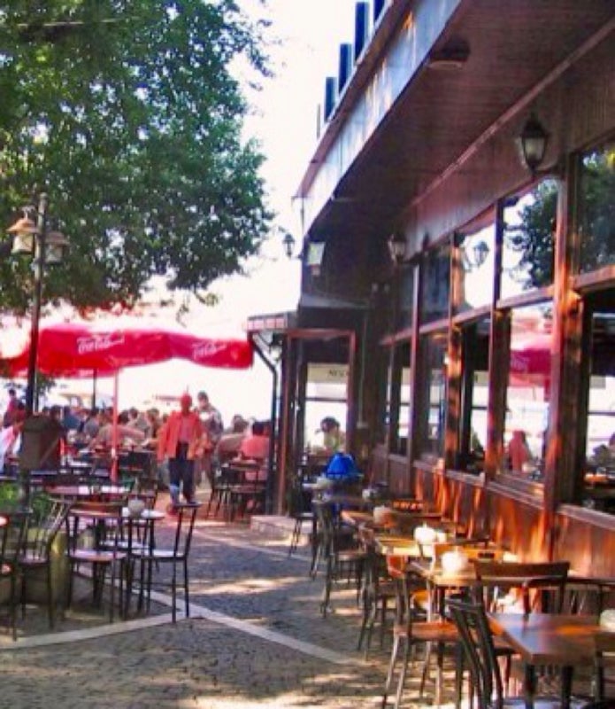Sadece içecek ısmarlayarak, dışardan getirdiğin yiyecekleri yiyebildiğin, eğer deniz kenarına oturabilirsen güzel manzaralı tarihi bir kafe. -İpodii