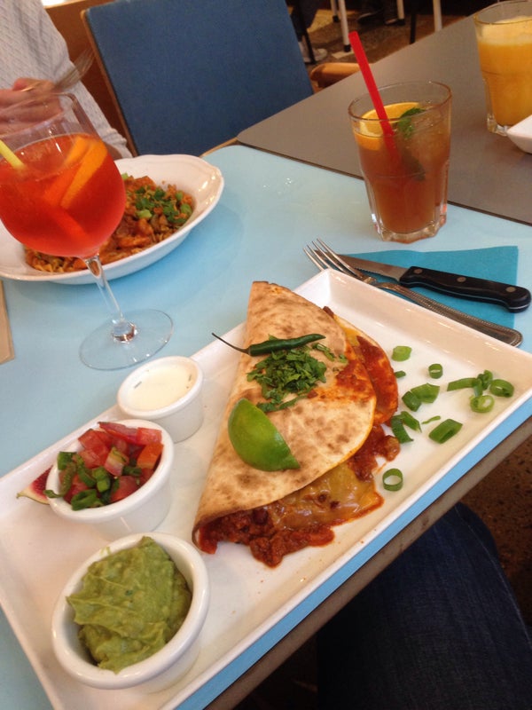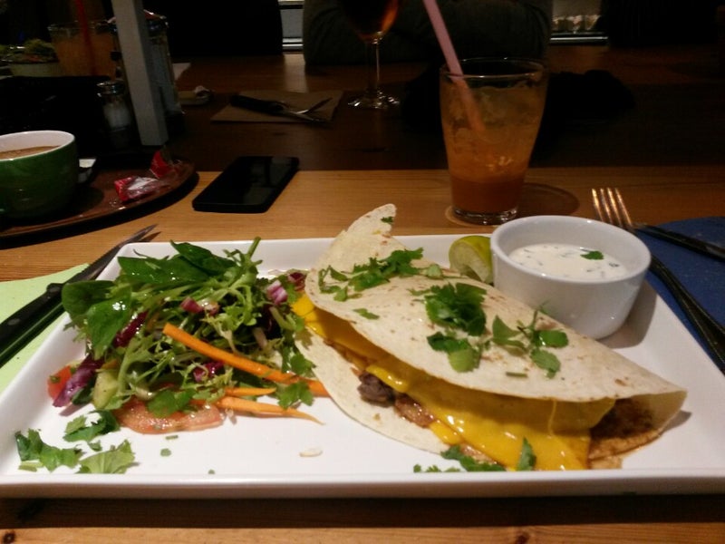 Try the quesadillas! They come with a salad and a dressing. Very tasty! -Evelyn