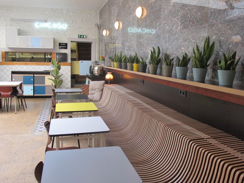 Power sockets near all wall side tables and free WiFi! (password: BOEMPATAT) -Martijn